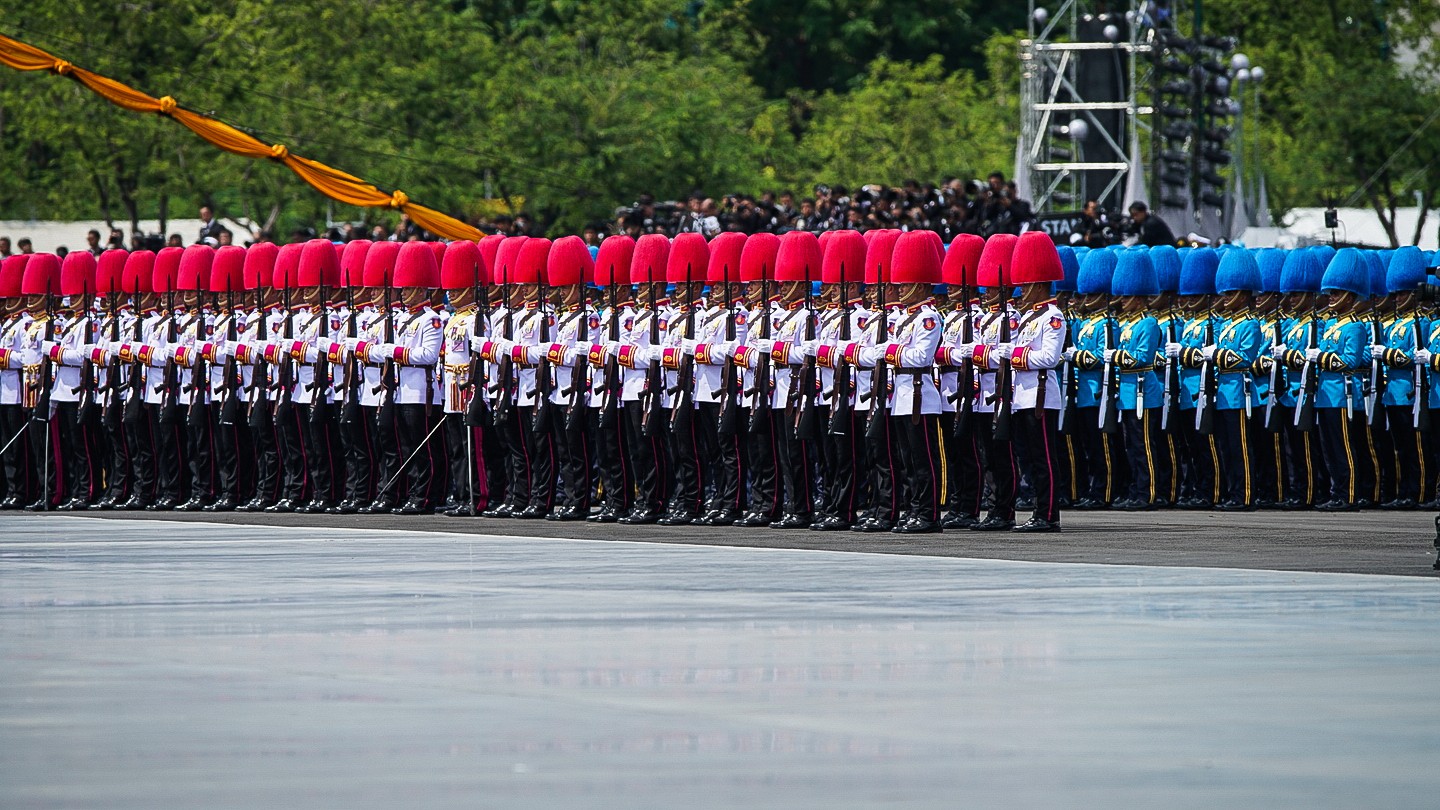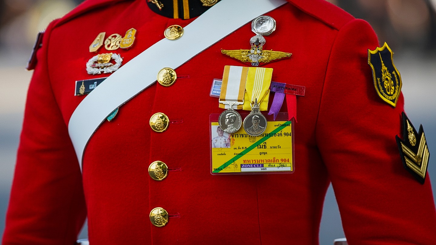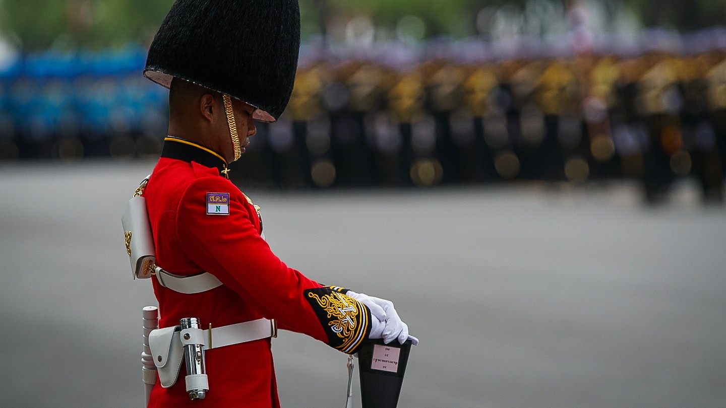 Lực lượng vệ binh hoàng gia đại diện cho quân đội Thái Lan đưa tiễn linh cữu vua Bhumibol - Ảnh: THUẬN THẮNG
