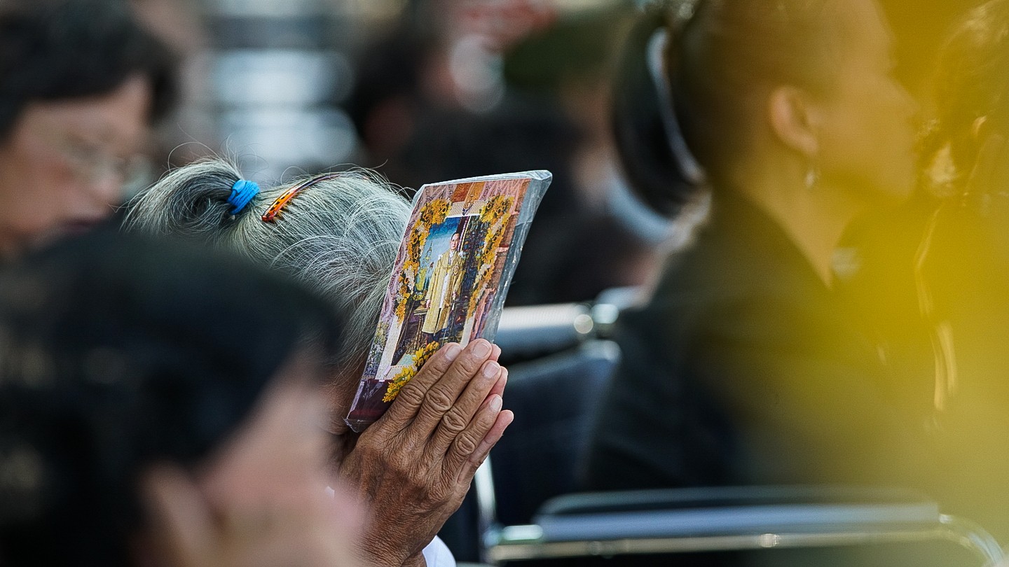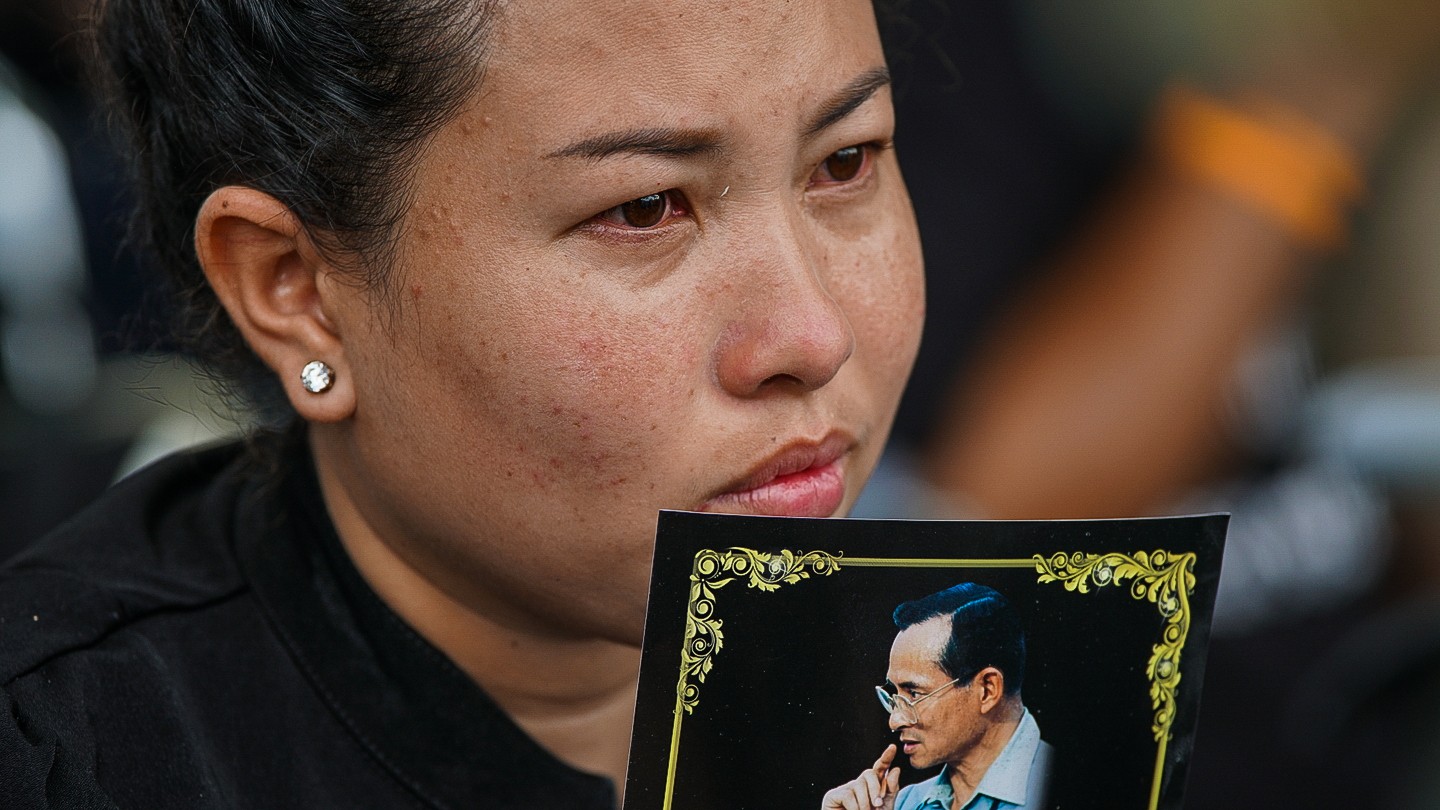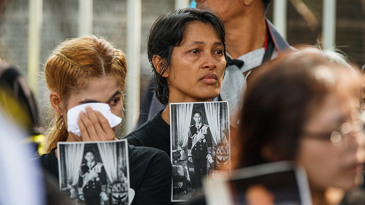 Mặc dù phải chờ đợi nhiều ngày mệt mỏi, không ít người lả đi phải cần tới đội cấp cứu, tuy nhiên khi kim quan vua Bhumibol đi qua, mọi người đều không kìm được nước mắt thương tiếc - Ảnh: THUẬN THẮNG
