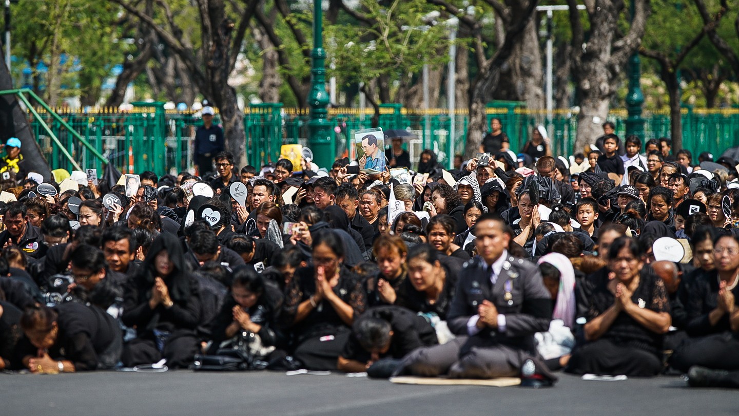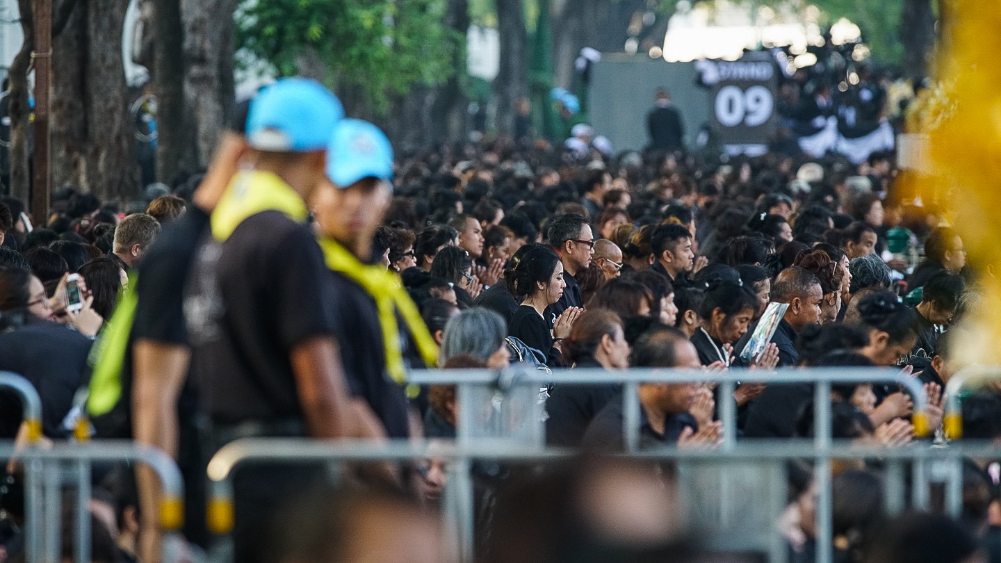 Ước tính có gần 250.000 người dân Thái tập trung xung quanh khu vực hoàng cung đưa tiễn vị vua kính yêu của mình - Ảnh: THUẬN THẮNG