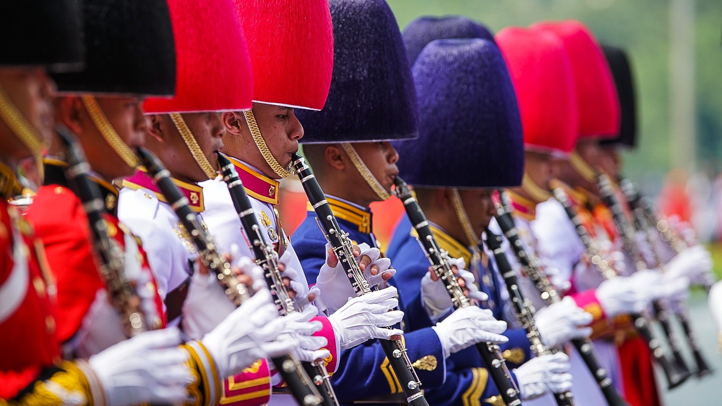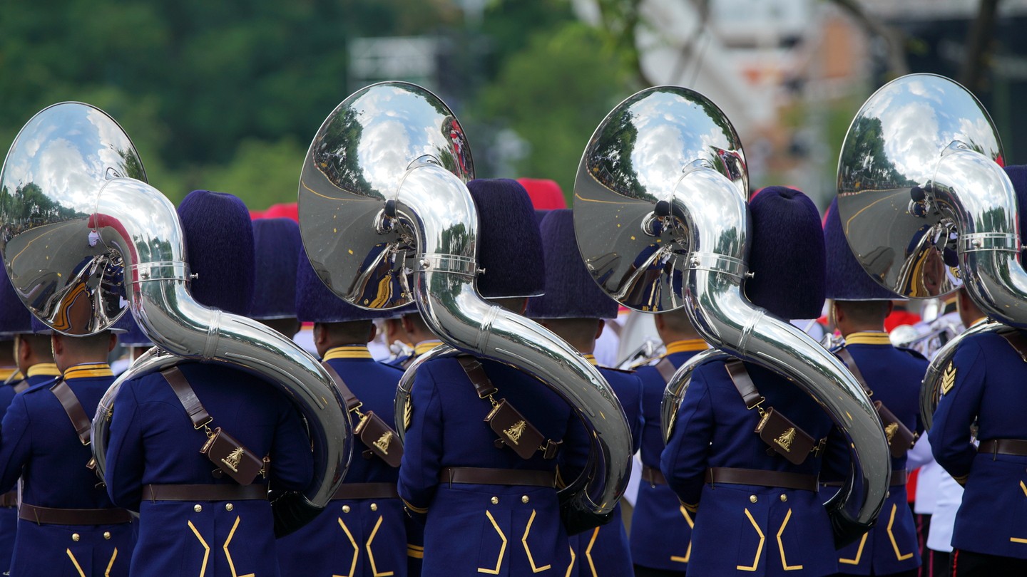 Đã có gần 6.000 người trực tiếp tham gia nghi thức tang lễ của vua Bhumibol, từ đội kèn trống, vệ binh hoàng gia, cảnh sát quân đội và đông đảo lực lượng kéo hai chiếc xe chở tăng thống Phật giáo và linh cữu vua - Ảnh: THUẬN THẮNG
