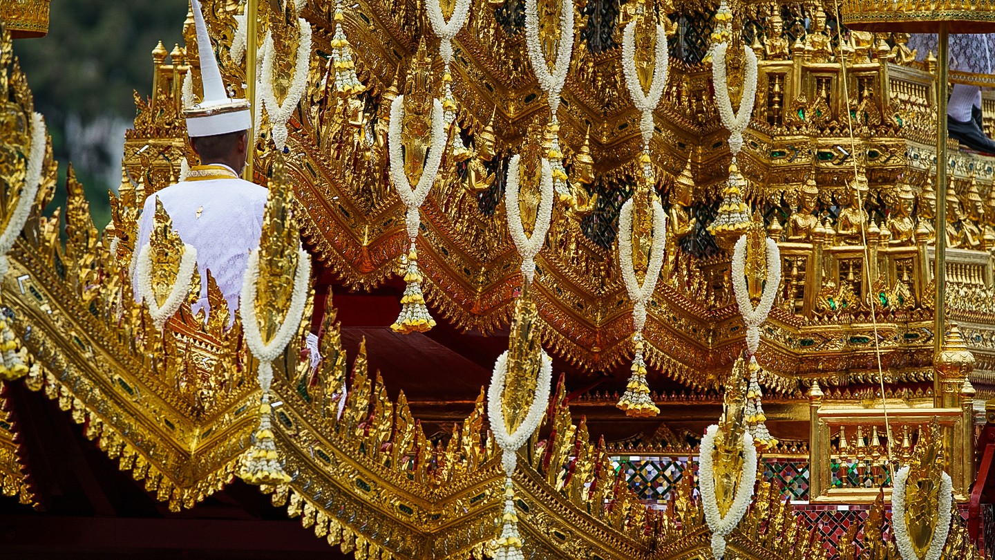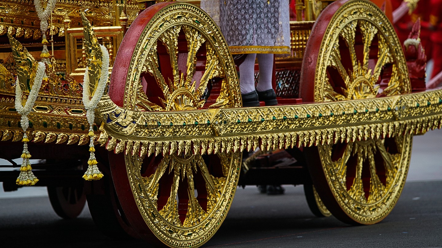 Xe đại thắng chở kim quan của nhà vua được làm thủ công bởi những nghệ nhân giỏi nhất nước Thái - Ảnh: THUẬN THẮNG